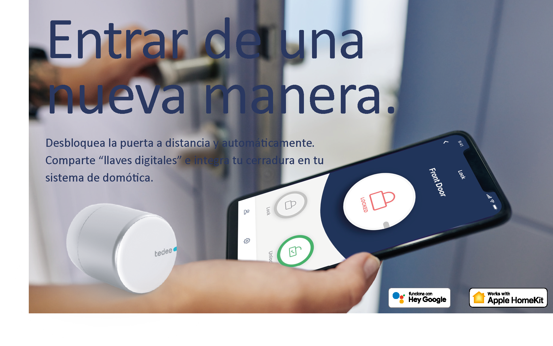 Se carga tan solo cada 14 meses (usándolo hasta 8 veces al día) y se puede bloquear o desbloquear con un botón o mediante la app de Tedee.